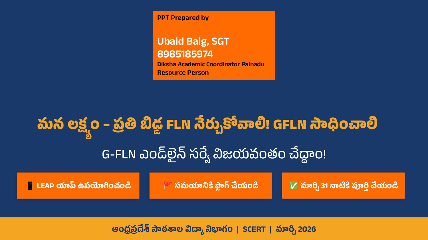 LEAP యాప్ ద్వారా FLN ఎండ్‌లైన్ సర్వే 23వ తేదీ నుండి 31 మార్చి 2026 వరకు