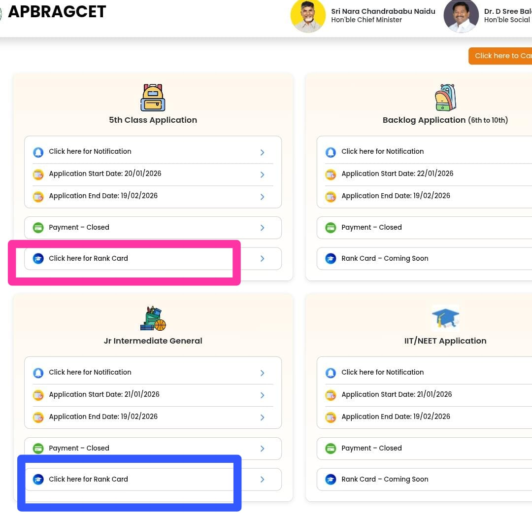 APBRAGCET 2026 Rank Cards Released – 5th Class & Inter Admissions