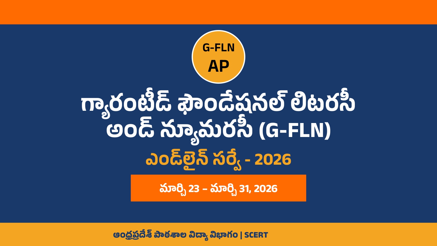 • కార్యక్రమ ఉద్దేశం: 1 నుండి 5వ తరగతి చదువుతున్న విద్యార్థులందరూ 2026 మార్చి నాటికి చదవడం మరియు గణితంలో 'నిపుణ్ లక్ష్యాలను' (NIPUN Lakshyas) సాధించాలనే ఉద్దేశ్యంతో ప్రభుత్వం గ్యారెంటీడ్ ఫౌండేషనల్ లిటరసీ అండ్ న్యూమరసీ (G-FLN) కార్యక్రమాన్ని ప్రారంభించింది.